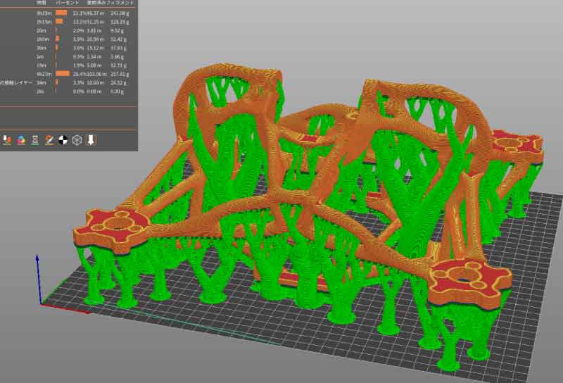 大型プリンター5台と中型プリンター3台を活用し、自動ツールチェンジ機能の有効活用と知識豊富なエンジニアによる最適条件設定で効率的な高速生産を実現しています。